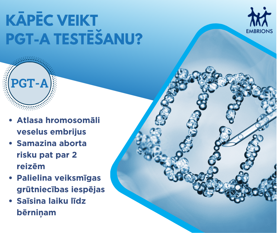 Kāpēc pāriem neauglības ārstēšanas cikla laikā iesakām PGT-A testēšanu?